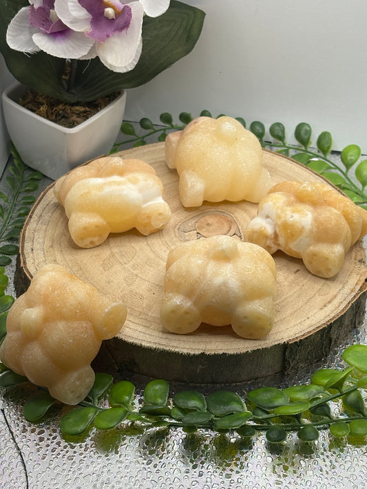 Halloween-Kürbis aus Orangencalcit – geschnitzt als Maske & Cinderella-Kutsche