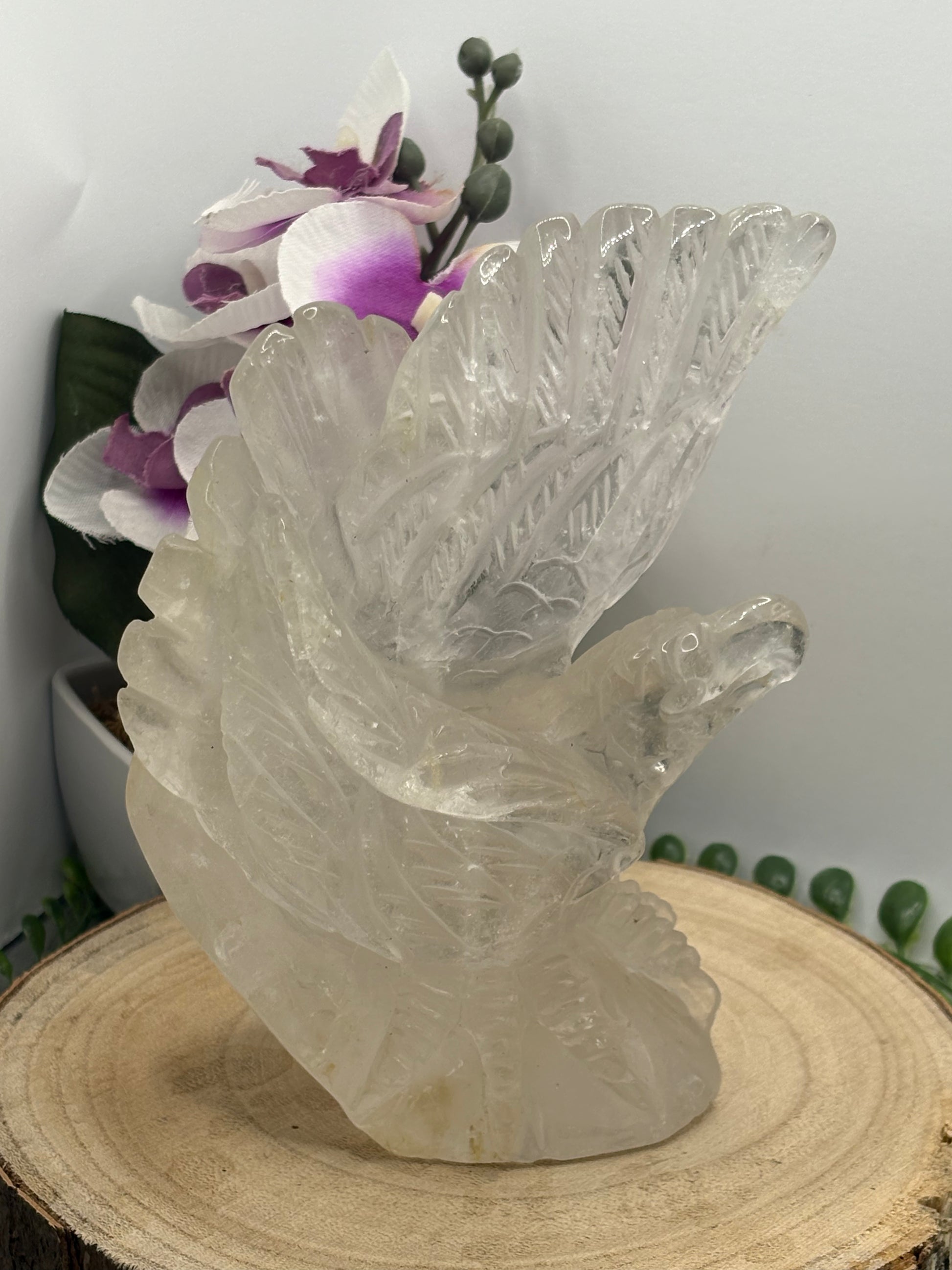 Ob als energetisches Schutzsymbol, dekoratives Highlight oder kraftvolles Sammlerstück – dieser Adler aus Bergkristall vereint Naturkunst und spirituelle Bedeutung auf eindrucksvolle Weise.
