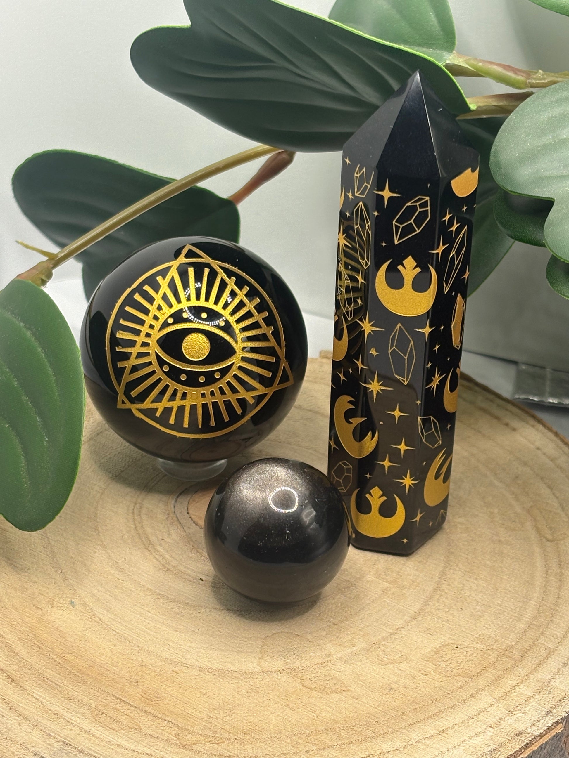 Wähle zwischen Turm oder Kugel – mit einer Mini-Silberobsidian-Kugel als Geschenk.
